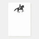 Post it notes with a black and white illustration of a dressage rider in formal attire. The horse and rider are performing a beautiful pirouette. An elegant classic dressage movement.