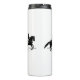A tumbler with a black and white illustration of a dressage rider in formal attire. The horse and rider are performing a beautiful pirouette. An elegant classic dressage movement.
