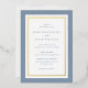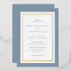 Elegant dusty blue and gold foil wedding invitation. Gold foil frame.