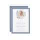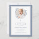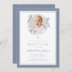Elegant Dusty Blue Bow Photo Baptism Invitation. For best results upload a square image of the baby.