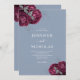 Elegant Dusty Blue Burgundy Floral Wedding Invitation.