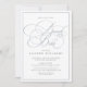 Formal, elegant, modern brunch with the bride bridal shower invitation featuring ornate hand written modern calligraphy in dusty blue, with a delicate blue border. Personalise your details in soft off-black. Contact designer for matching products. Copyright Anastasia Surridge for Elegant Invites, all rights reserved.