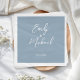 Elegant dusty blue wedding napkin featuring a beautiful combination of white calligraphy for your names with a modern font for your wedding date. A modern and stylish design which is a perfect way add a special and personal touch to your engagement party, rehearsal dinner or wedding reception.