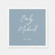 Elegant Dusty Blue Calligraphy Names Wedding Napkin