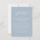 Perfect for a modern wedding, these detail cards feature an elegant script on a dusty blue background. Use the body of the card to communicate specific details of your wedding to your guests.