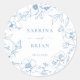 Elegant Dusty Blue Classic Floral Wedding Round Sticker