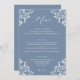 Elegant Dusty Blue Wedding Menu: This luxury wedding menu is perfect for an elegant, classic wedding. It features a vintage ornate border with modern and elegant calligraphy. See all of the matching products below.