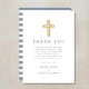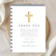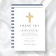 Elegant Dusty Blue Cross Boy Baptism Thank You Card
