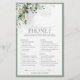 Modern, elegant bridal shower game "What's on Your Phone" featuring lush grey green botanical leaves and eucalyptus, and bordered in pale eucalyptus blue grey green. Personalise your questions in soft off-black, accented with beautiful modern hand lettered calligraphy. Part of a co-ordinated suite. View suite here: https://www.zazzle.com/collections/elegant_eucalyptus_green_botanical_bridal_shower-119330045467288535 Contact designer for matching products. Copyright Anastasia Surridge for Elegant Invites, all rights reserved.