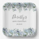 Elegant Dusty Blue Floral 80th Birthday Custom Paper Plate