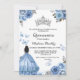 Celebrate the enchantment of your Quinceañera with our exquisite Dusty Blue Floral Invitation adorned with delicate butterflies and a regal crown motif.dusty blue background sets the perfect tone for the occasion,