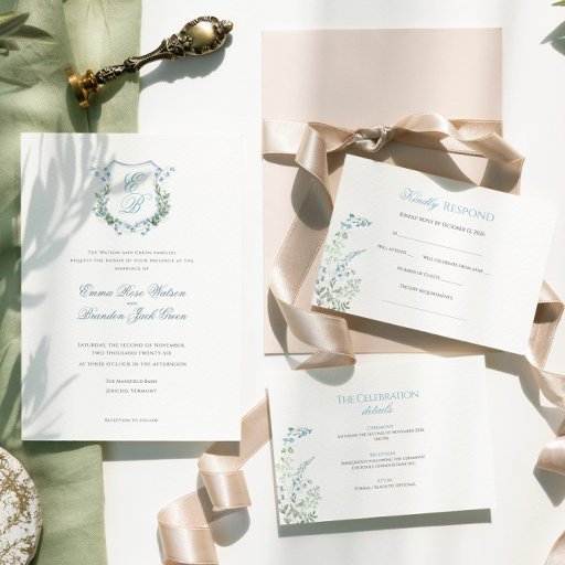 Dusty Blue Floral Crest Formal WeddingDesigned by Marina O.