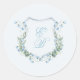 Elegant Dusty Blue Floral Crest Wedding Classic Round Sticker