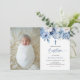 Elegant Dusty Blue Floral Custom Picture Baptism Invitation