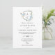 Delicate white and dusty blue floral monogram crest QR code all in one wedding invitation.