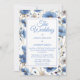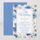 Introducing our minimalist and trendy wedding invitation, featuring a pretty flowers in light blue, with an elegant background , creating a clean and stylish look for your special day.