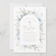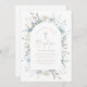 Elegant Dusty Blue Floral With Script Baptism Invitation