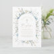 A special way to commemorate your most holy occasion. This baptism invitation features a delicate dusty blue floral botanical arrangement, framing an arch holding a simple gold cross. Elegant gold script conveys all your event details. Make sure your day is just as perfect as you are by inviting family and friends to celebrate with this simple elegant baptism invitation! Contact designer for matching products. Copyright Susan Mingay Koehrn for Susan Mingay Designs, all rights reserved.
