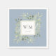 Elegant Dusty Blue Greenery Gold Monogram Napkin