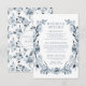 Dive into contemporary elegance with this details card tailored for a romantic bohemian wedding adorned with dusty blue and grey flower motifs. Highlighting a delicate wreath of blue and grey floral blooms, this customisable card allows you to personalise your wedding experience. Enhance its modern appeal by adding the names of the bride and groom on the back side, elevating the overall sophistication of your wedding festivities.