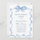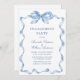 Elegant Dusty Blue Hand Drawn Bow Engagement Party Invitation