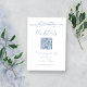 Elegant Hand Drawn Ribbon Bow with modern handwritten script fonts and QR code in dusty blue, clean and simple. Great for modern romantic wedding, unique fun whimsical wedding, elegant casual wedding.