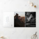 Tri-fold photo wedding invitation featuring a simple and modern design with your names in an elegant handwritten script and your event details in right alignment. The backside of the invitation and the cover each have a photo. All design elements are in dusty blue and may be changed in the design editing tool. The chic hand lettering adds a romantic touch to this minimalist design.