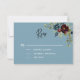 Elegant dusty blue navy burgundy floral wedding RSVP card