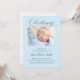 Elegant Dusty Blue Pastel Script Baptism Photo Boy Invitation