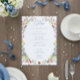 Step into a world of timeless elegance with our exquisite Baroque wildflower wedding menu. A wreath of soft pastel watercolor blooms surrounds the menu details which appear in dusty blue, in sophisticated harmony. Perfect for couples who seek an invitation that whispers luxury, romance, and the charm of old-world grandeur. Let your wedding begin with a design as breathtaking as the day itself. Created by Simply Farmhouse Press.