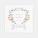 Step into a world of timeless elegance with our exquisite Baroque wildflower wedding cocktail napkin. A regal crest, adorned with your last initial, names, and wedding date sits at the center of this design, encircled by soft pastel watercolor blooms and a delicate ribbon. Perfect for couples who seek a design that whispers luxury, romance, and the charm of old-world grandeur. Created by Simply Farmhouse Press.
