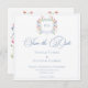 Step into a world of timeless elegance with our exquisite Baroque wildflower wedding save the date card. A regal crest, adorned with your initials, sits at the center of this design, encircled by soft pastel watercolor blooms and a delicate ribbon. A refined dusty blue border encloses your wedding details in sophisticated harmony. Perfect for couples who seek a design that whispers luxury, romance, and the charm of old-world grandeur. Let your wedding begin with a design as breathtaking as the day itself. Created by Simply Farmhouse Press.