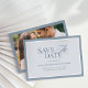 These elegant, old money style wedding save the date cards feature a dusty blue and white border. There is a mix of classic text and modern calligraphy for a classy and minimalist design perfect for your timeless, formal wedding. There is also room to provide the link to your wedding website, and the back of the card features your favorite personal photo.