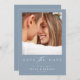 Announce your special day with our "Elegant Dusty Blue Photo Wedding Save The Date." Its black and white design radiates elegance, complemented by elegant modern calligraphy. Upload a cherished photo of you and your future spouse to make it personal. With customisable wording and editable text and background colours, you can effortlessly tailor it to match your event, creating a truly unique wedding announcement that captures the essence of your love and celebration.