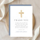 Elegant Dusty Blue Religious Boy First Communion Thank You Card