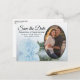 These beautiful postcards are a wonderful way to let your friends and family know to save the date for your upcoming wedding. They feature an elegant, classy, and romantic design with a single long-stemmed pale dusty blue or powder blue coloured rose reflecting in a pool of water, and your photo in an oval shaped frame. The caption reads Save the Date with space for your names, the date, and location. The back has a cute "pencil us in" graphic with space for a short note and your signatures.