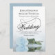 This beautiful wedding invitation features a gorgeous photograph of a single long stemmed pale powder blue or dusty blue coloured rose lying on its side reflecting in a pool of water with waves and ripples. The design features a fancy calligraphy script with a long curly tail making it both modern and classic. Elegant, sophisticated and chic way to invite your friends and family to share in your special day. The back of the card has a QR code for your wedding website and a brief note instructing people to visit the site for details and RSVP.