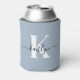 This simple, elegant dusty blue can cooler with your first name in a trendy script font in black and your first initial in a modern cap font in white is perfect for you. It's stylish and trendy and yet very classic. Get a bunch for when you're entertaining. Guests will be able to keep their drinks nice and cold.