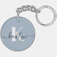 Elegant Dusty Blue Script Monogram Key Ring