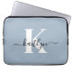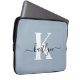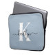Elegant Dusty Blue Script Monogram Laptop Sleeve