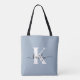 This simple, elegant dusty blue tote bag with your first name in a trendy script font in black and your first initial in a modern cap font in white is perfect for carrying office work, school work, books, craft projects, anything at all. It's stylish and trendy and yet very classic.