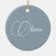 Elegant Dusty Blue Script Name Christmas Ceramic Ornament