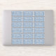 Chic dusty blue address label stickers for your wedding invitations featuring your guests' names in an elegant white script and their addresses in classic white serif typography. Each sheet contains 18 stickers -- when finished with one, place it in your cart and start a new sheet the next 18 guests. If a name or address is large or small, you can adjust the font size for that label by selecting to edit in the design tool.