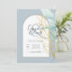 Elegant Dusty Blue SeaGlass Gold Leaf Arch Wedding Invitation