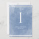 Help your guests find their table with this elegant dusty blue and blue hues watercolor table number. Double sided cards. Exquisite dusty blue and blue watercolor wash background and white text. NOTE: please place an individual order for each table number you need (i.e. for an event with three tables, you would need to place and order with table number one, add into shopping cart, then come back add number two for table two, add into shopping cart, come back and add number 3 for table number three, add into shopping cart, and now that order is complete proceed to payment). Part of our "Dusty Blue Watercolor Botanical Monogram Wedding" Collection with a variety of coordinating products available, including seating plan chart cards, menus and more. Visit the entire collection with this link: https://www.zazzle.com/collections/dusty_blue_watercolor_botanical_monogram_wedding-119563330291349279