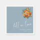 Celebrate your love story in style with these elegant dusty blue wedding napkins! Featuring a beautiful "Fall in Love" script in white and delicate marigold watercolor accents, these napkins add a touch of timeless romance and a pop of colour to your wedding reception.