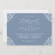 These elegant dusty blue wedding rehearsal dinner invitations are perfect for a classy, sophisticated wedding theme. The design features a vintage ornate frame paired with elegant calligraphy and classic text. The back has the couple's initials along with a hosted by line to honour the hosts of the rehearsal dinner (this can be deleted if you don't want it).