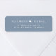Elegant dusty blue return address labels for your wedding invitations, save the dates, engagement announcements, couples shower invites, thank you cards and other correspondence. Personalise your monogram with your names joined by a heart in white serif typography.