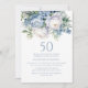 Elegant Dusty Blue White Floral 50th Birthday Invitation
