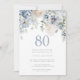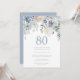 Elegant Dusty Blue & White Floral 80th Birthday Invitation